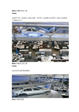 BMW 集團的製造工廠 Leipzig 這張照片呢,就是辦公室跟生產線一起作業,這張圖也就呈現出工廠在生產過程 中無噪音污染。 BMW 集團的製造工廠 Leipzig 這是他們生產的製造過程。 BMW 集團的總部