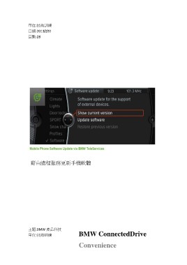 單位:技術訓練 日期:2013/2/20 頁數:28 藉由遠程服務更新手機軟體 主題:BMW 產品科技 BMW ConnectedDrive 單位:技術訓練 Convenience