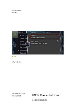 日期:2013/2/20 頁數:29 我的資訊 BMW ConnectedDrive Convenience 主題:BMW 產品科技 單位:技術訓練