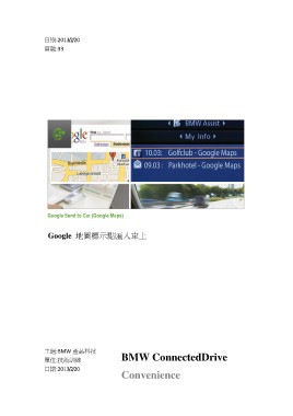 日期:2013/2/20 頁數:33 Google 地圖標示點匯入車上 主題:BMW 產品科技 BMW ConnectedDrive 單位:技術訓練 日期:2013/2/20 Convenience