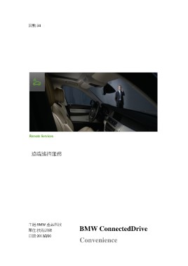 頁數:34 遠端遙控服務 BMW ConnectedDrive Convenience 主題:BMW 產品科技 單位:技術訓練 日期:2013/2/20