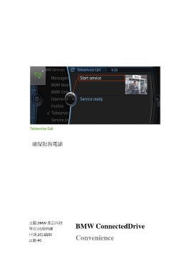 BMW ConnectedDrive Convenience 遠程服務電話 主題:BMW 產品科技 單位:技術訓練 日期:2013/2/20 頁數:40