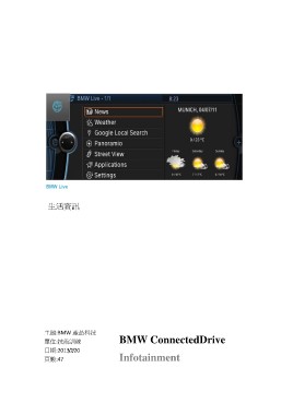 生活資訊 BMW ConnectedDrive Infotainment 主題:BMW 產品科技 單位:技術訓練 日期:2013/2/20 頁數:47