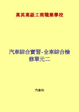 高英高級工商職業學校 汽車綜合實習-全車綜合檢 修單元二 汽車科