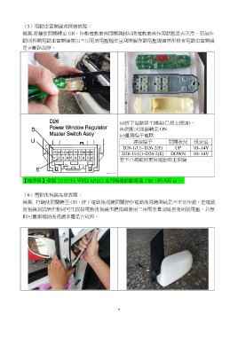 檢測:將鑰使開關轉至 ON,作動電動車窗開關測試切換電動車窗作用狀態是否正常,若無作