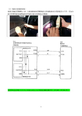 (4)電動車窗線路故障: 檢測:將鑰使開關轉至 ON,作動電動車窗開關測試切換電動車窗作用狀態是否正常,若無作 動則拆開電動車窗開關檢查電動車窗系統接頭是否鬆脫。 【標準值】參閱 TOYOTA WISH ANE12 系列電器診斷修護手冊(05-888 ~ 05-944 頁)。 6