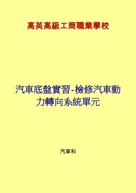 高英高級工商職業學校 汽車底盤實習-檢修汽車動 力轉向系統單元 汽車科
