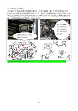 文字敘述:如圖範例診斷各相關感知器故障,檢視診斷儀器上顯示之故障碼(查詢故障碼