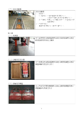 (三)煞車試驗機 剎車試驗器 30 50 1 ( 50 第二題 2 (一)側滑器 )。 16 本工具使用於更換底盤懸吊系統之維修後調整及修正 該測試前束的角度之儀器 (二)前輪定位氣泡儀 本工具使用於更換底盤懸吊系統之維修後調整及修正 調整前輪角度定位之特工 (三)前輪定位轉盤 本工具使用於更換底盤懸吊系統之維修後調整及修正 調整輪胎的角度之特工 3