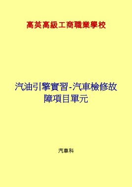 高英高級工商職業學校 汽油引擎實習-汽車檢修故 障項目單元 汽車科