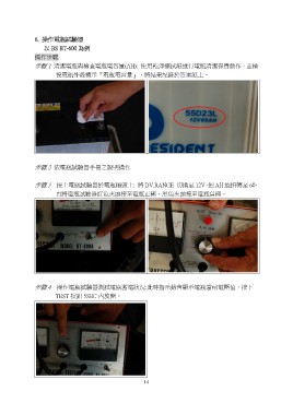 步驟 4 操作電瓶試驗器測試電瓶蓄電狀況:此時指示錶會顯示電瓶當前電壓值,按下