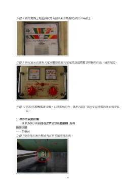 步驟 8 將充電機上電壓錶與電流錶所顯示數據紀錄於答案紙上。 步驟 9 待充電完成後將充電電壓旋鈕與充電電流旋鈕調整至切斷的位置,關閉電源。 步驟 10 拔除充電機電源插頭,並將電瓶紅色、黑色接頭拆除收妥並將電瓶移至指定位 置。 3. 操作空氣壓縮機 以 PUMAU 有油往復皮帶式空氣壓縮機 為例 操作步驟 一、開機前 步驟 1 檢查洩水閥外觀是否正常並關閉洩水閥。 6