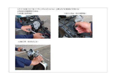 直至汽缸壓力表之壓力不再 升為 ± r , 數值為汽缸壓縮壓力的最大值 .將 測所得數據填於答案 鎖回火星塞,裝回高壓導線 卸除壓力拆開接頭 發動引 ,檢查是否 常