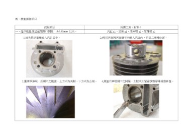 貳 能作目 所需工 材料 汽缸 x 活塞 x 活塞環 x 厚薄規 x 能目 一 能 確 測活塞環開口間隙 ±0.05mm 以 利用活塞將活塞環平均壓入汽缸 , 第 環槽 置 首先將活塞環放入汽缸當中 選擇厚薄規,所標示之數據, 方列為英制, 方列為 制 測 活塞環開口之間隙,太鬆或太緊需調整厚薄規重新