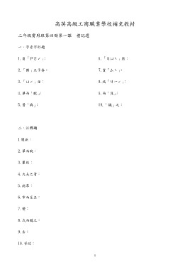 高英高級工商職業學校補充教材 二年級實用班第四冊第一課 禮記選 一、字音字形題 1.易「ㄗㄜˊ」: 6.「ㄐㄩˋ」然: 2.「樂」正子春: 7.賞「ㄙˋ」: 3.「ㄩˊ」坐: 8.病「ㄐ一ˊ」: 4.華而「睆」: 9.而「沒」: 5.簀「與」: 10.「識」之: 二、注釋題 1 寢疾: 2.華而睆: 3.瞿然: 4.大夫之簀: 5.病革: 6.幸而至旦: 7.變: 8.式而聽之: 9.去: 10.苛政: 1
