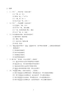 ( )4.「樂正子春坐於牀下,曾元、曾參坐於足,童子隅坐而執燭。」這樣的位置敘述有