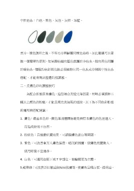 中性色系:白色、黑色、灰色、灰棕、深藍。