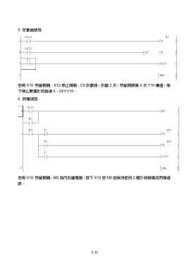 5. ࢍᇴጡֹϡ ֹϡ X10 ୁજฟᙯăX12 ઃͤฟᙯăC0 ࢍᇴጡĂࢍᇴ 2 ѨĂୁજฟᙯᑅ 2 Ѩ Y10 ጱ఼Ăᑅ ˭ઃͤฟᙯࢍॡጡఢ 0ĂOFFY10Ą 6. ੯ᘖਫ਼ྮ ֹϡ X10 ୁજฟᙯĂM0 ࠎ̰ొᚶጡĂ˭ X10 ֹ M0 ҋֹܲϡ 2 ࣎ࢍॡጡၹј੯ᘖਫ਼ ྮĄ 3-11