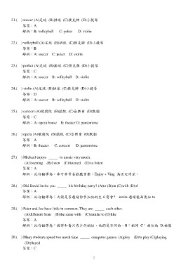 21.( ) soccer (A)足球 (B)排球 (C)撲克牌 (D)小提琴