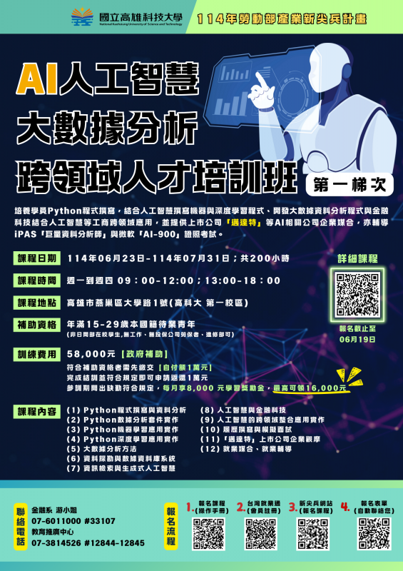 高雄科技大學辦理「114年勞動部產業新尖兵計畫」課程資訊